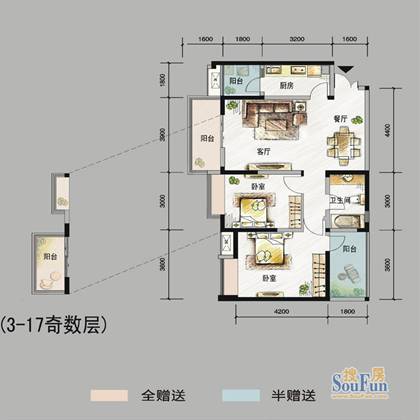 非常适合三口之家的户型,半赠送的生活阳台为主人家增加了改造的空间,入门的玄关设计为主人家增加了私密性。7.2平方的客厅阳台和两个卧室的飘窗属于全赠送面积,大大增加了空间使用率。两个卧室与卫生间的安排比较合理,生活休闲区与休息区有了明显的界限。