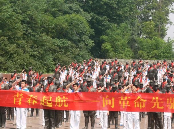 六一儿童节,石室联中蜀华分校八年级全体少先队员来到建川博物馆聚落“中国壮士”广场举行了“告别童年,青春起航”六一庆祝活动。