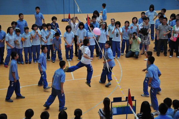 大会结束后,全体同学和老师到体育馆参加了庆六一趣味体育活动。本次活动比赛项目是以适合孩子的年龄特点为主的游戏,包括“四龙戏珠”、“踩气球”和“拔河”三个项目,强调趣味性和团结协作性。活动过程中,孩子们个个争先恐后,活力十足。