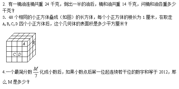 五升六小班入学测试题(二) 家长帮社区 2011-06-30 09:30:58 五升六小班入学测试题(二) 时间:60分钟 推荐阅读: 小升初数学模拟题试卷 2011小升初数学试题及解答 2011年小升初语文模拟试题及答案 2011年小升初考试数学试卷及答案