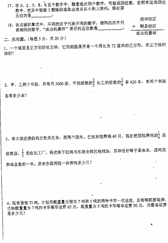 嘉祥外国语2010年秋季六年级招生数学试题(2) 家长帮社区 2011-08-31 15:52:51 推荐阅读: 嘉祥外国语2010年秋季六年级招生语文试题 成都七中2008年外地生招生考试数学试题 2010成都七中小升初奥数考试题 首页 上一页 下一页 尾页
