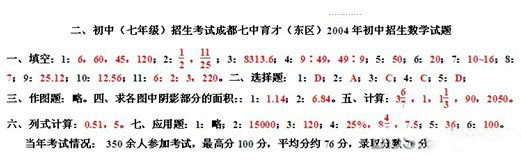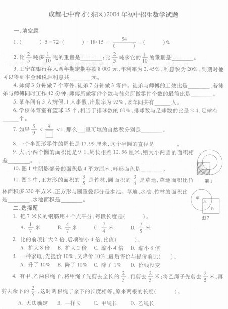 七中育才(东区)2004年小升初招生数学试题 家长帮社区 2011-12-05 16:08:01 成都七中育才(东区)2004年小升初招生数学试题 答案: 推荐阅读: 2005七中育才(东区)衔接班招生数学试题及答案 成都七中2009年外地生招生考试数学试题 青羊区小学2011年四年级半期数学考试题