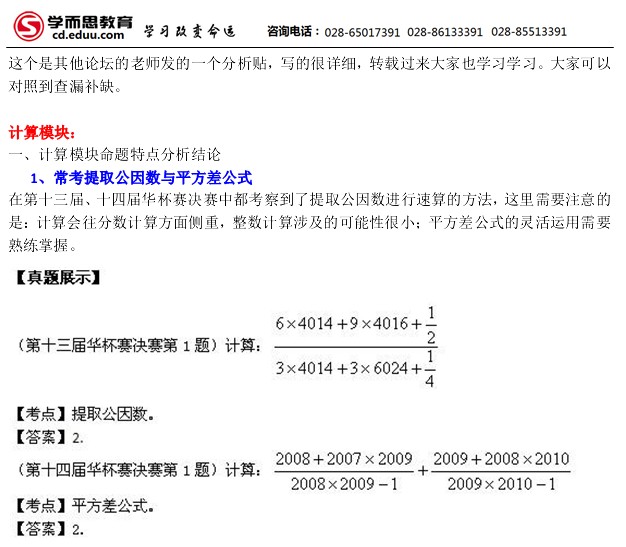 新年礼包:华杯赛各知识模块考点分析 家长帮社区 2012-01-10 13:37:10 新年礼包:华杯赛各知识模块考点分析 华杯赛各知识模块考点分析完整版 推荐阅读: 面对华杯赛,我们应该做什么? 近三年迎春杯五大模块知识点分析 从近三年迎春杯看2012年华杯赛