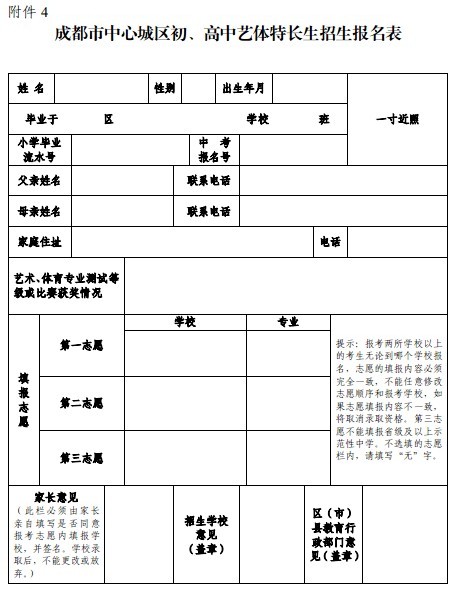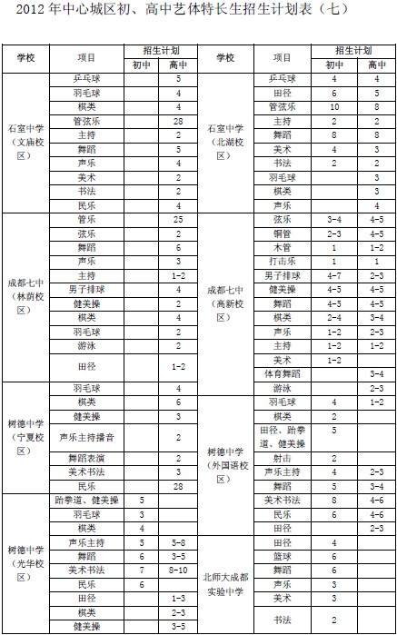 2012年中心城区初、高中艺体特长生招生计划表(3) 家长帮社区 2012-06-07 10:27:10 附成都市中心城区初、高中艺体特长生招生报名表 推荐阅读: 2012年中心城区初、高中艺体特长生招生通知 2012小升初之特长生备考指导 家长经验:2011年小升初主持特长生 小升初特长生测试注意事项 有关报考2012年小升初艺体特长生的问答 2013年起报考艺体 不再看艺术考级证书 首页 上一页 下一页 尾页