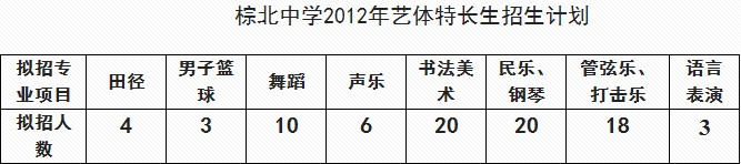 按照《成都市2012年城区初、高中艺体特长生招生办法》的文件精神,我校2012年艺术、体育特长生招生工作已经全面展开,为了更好地为大家服务,我们特将报名、测试、录取等相关事宜敬告如下: