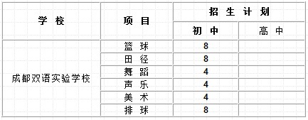 附:2012年成都双语实验学校艺体特长生招生计划表: