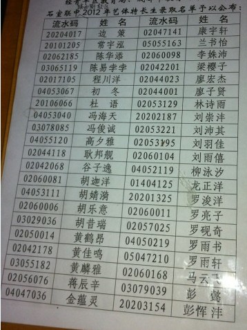 2012小升初艺体特长生名单已公布,以下为2012年中心城区小学毕业生初中入学艺体特长生石室联合中学(陕西街校区)录取名单,供大家查阅。
