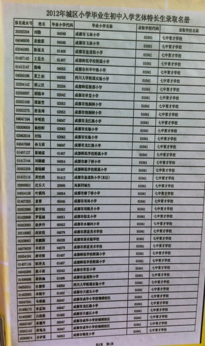 2012小升初艺体特长生名单已公布,以下为2012年中心城区小学毕业生初中入学艺体特长生七中育才录取名单,共60人,供大家查阅。