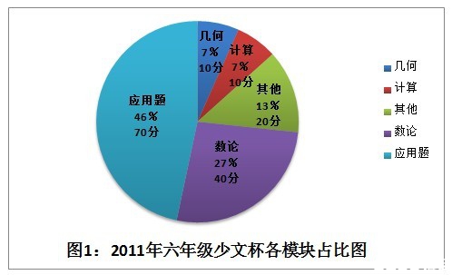 从考点来看,六年级少文杯主要从计算、数论、几何、应用题、其他五个部分考查,具体如下: