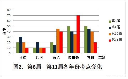 1) 计算、几何每年变化不大,一般为1~2道题目。