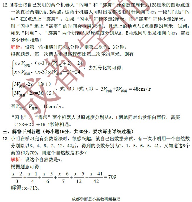 学而思呼呼老师点评:总体来说今年的题目难度略难于去年,但是从整篇来看,只有M博士的那道行程问题难度比较大一点(这种设方程的方法很多同学没有见过,但是比较幸运的是我们在少文杯高端班的第一次课给大家讲过)。