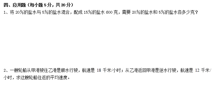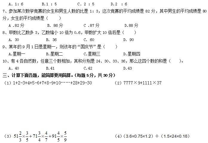 川师附属实验2012小升初数学模拟题三