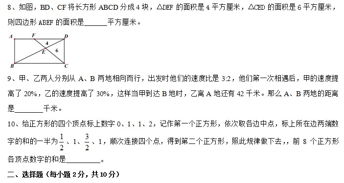 川师附属实验学校目前在成都属于私立二类学校,每年的2-4月份(时间不定)学校进行小升初报名,五一节到校参加小升初考试,考试通过即可缴费入学。以下是2012年四川师范大学附属实验学校数学模拟试题四,考试时间80分钟,满分100分,供大家参考。