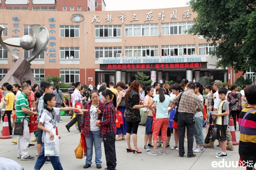 成都奥数网2013年5月25日 成都三原外国语学校小升初本地生考试今日下午在本校初中部举行。据了解,本次考试人数约3000人,共分三个科目(数语外)进行考试,预计招收12个教学班,奖学金最高可获得3.5万。