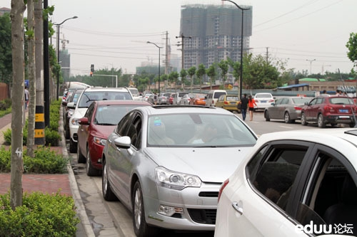 从成都,新都,都江堰,达州......以及其他地方过来的赴考车辆越来越多,在现场老师和工作人员的安排,井然有序的停放。