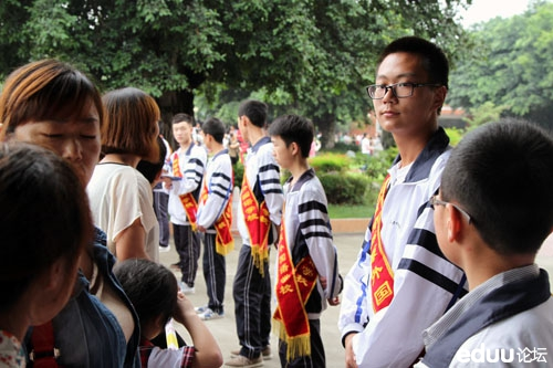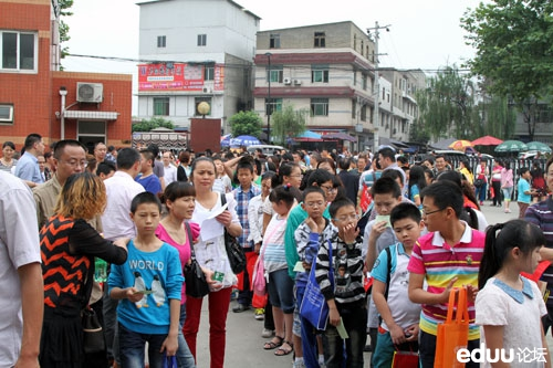 考试将近,学生和家长们纷纷聚集在小广场内,认真的听着学校的广播通知,按照顺序依次的等待着通知进场。各位考生由学校人员带领着依次进入考场。