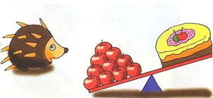 小刺猬能搬走10个苹果。动脑筋仔细想一想,小刺猬能搬动大蛋糕么?