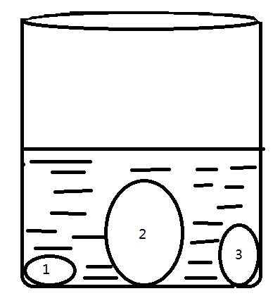 杯子中有1,2,3三块石头,要使水面下降的尽量少,应该把其中哪一块拿出来?要使水面下降的尽量多,应该把其中哪一块拿出来?