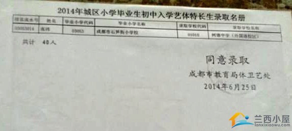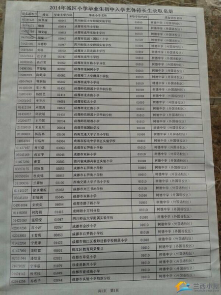 【查看原帖并参与讨论:成都树德中学外国语校区2014年小升初艺体特长生录取公示】