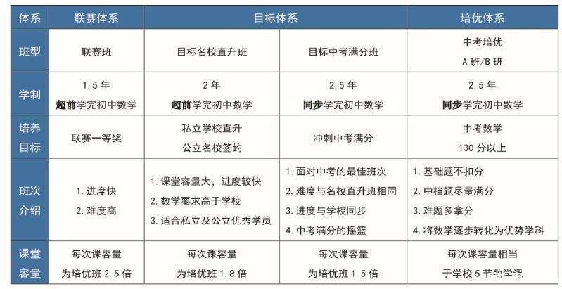 以下是各个体系、班型的详细设置,大家可以通过对比发现其中的差异: