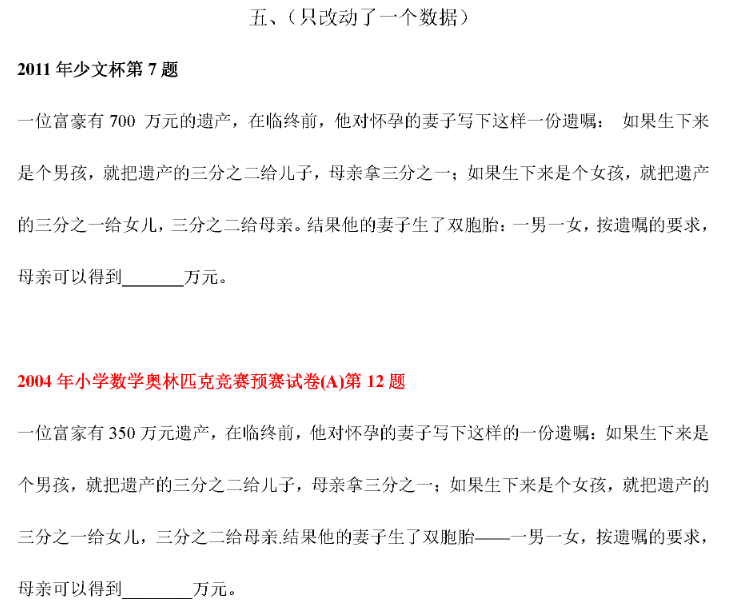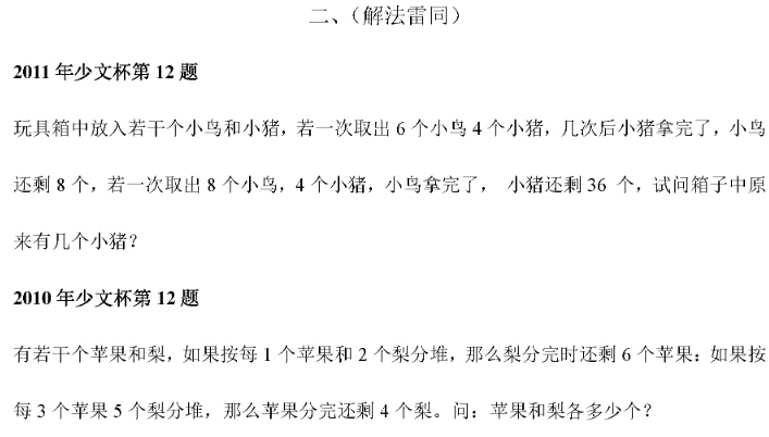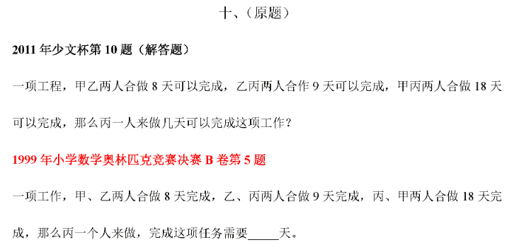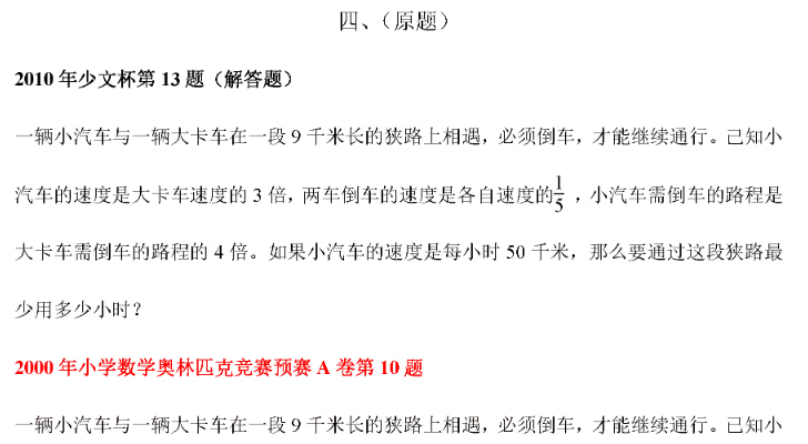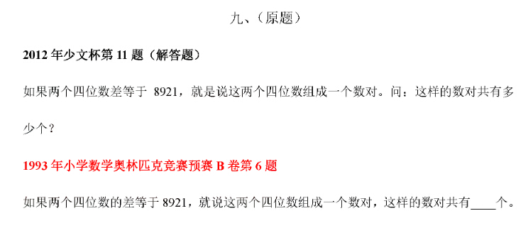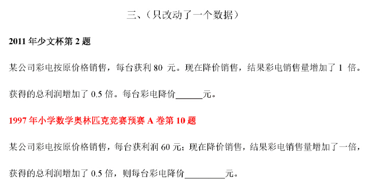 有成都的家长认为少文杯的获奖比例小,竞赛的难度比较大,但是,说到底少文杯还是华杯赛的预热赛,实质上还是奥数竞赛。所以,有奥数学习功底的孩子都要有获奖的信心。少文杯试题与奥林匹克竞赛的试题有着“剪不断,理还乱”的关系,本文将汇总09-13年少文杯六年级试题与奥赛试题雷同的题目,为本届少文杯的参赛选手加油打气。