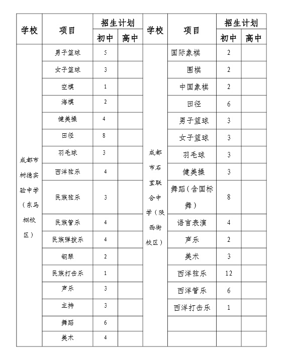 成都青羊区2015年小升初特长生招生计划表(2)