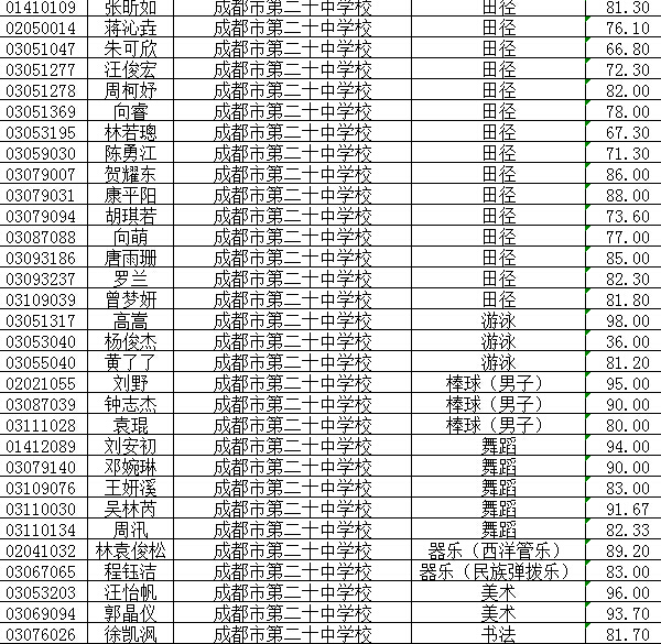 成都各公办初中2015小升初特长生录取名单公布了,下面是成都二十中2015年小升初艺体特长生录取名单,供参考。
