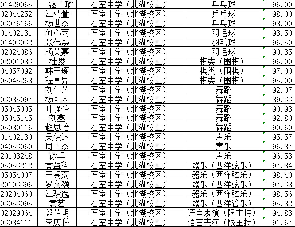 成都各公办初中2015小升初特长生录取名单公布了,下面是成都石室中学北湖校区2015年小升初艺体特长生录取名单,供参考。