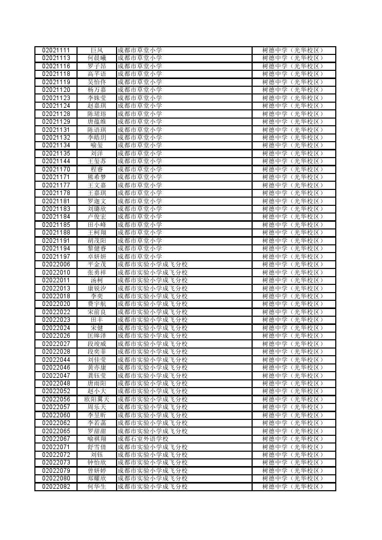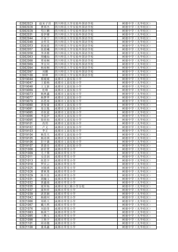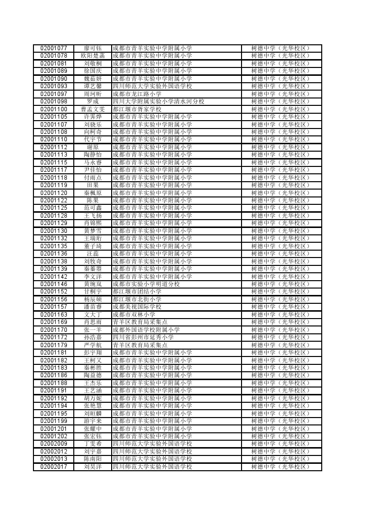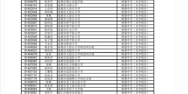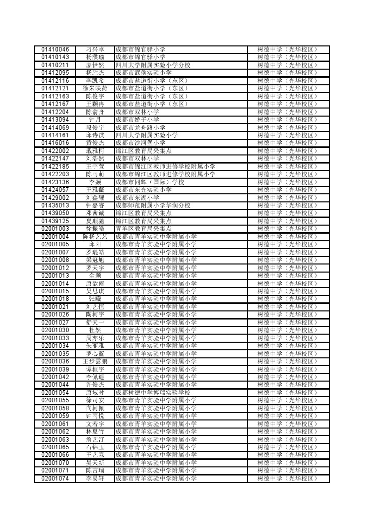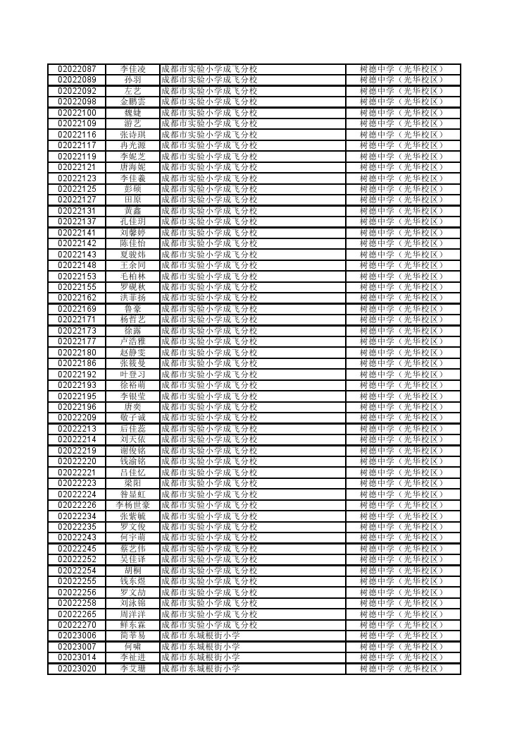 2015成都小升初第三批次确定学位的学校资格审查今日结束,根据规定,市招考办结合艺体特长生和民办学校的录取情况对学生报名资格进行了审查,现将符合成都树德光华校区2015小升初随机派位条件的学生名单予以公布。
