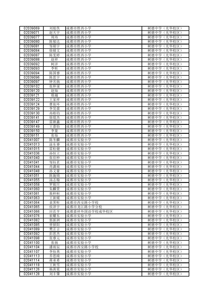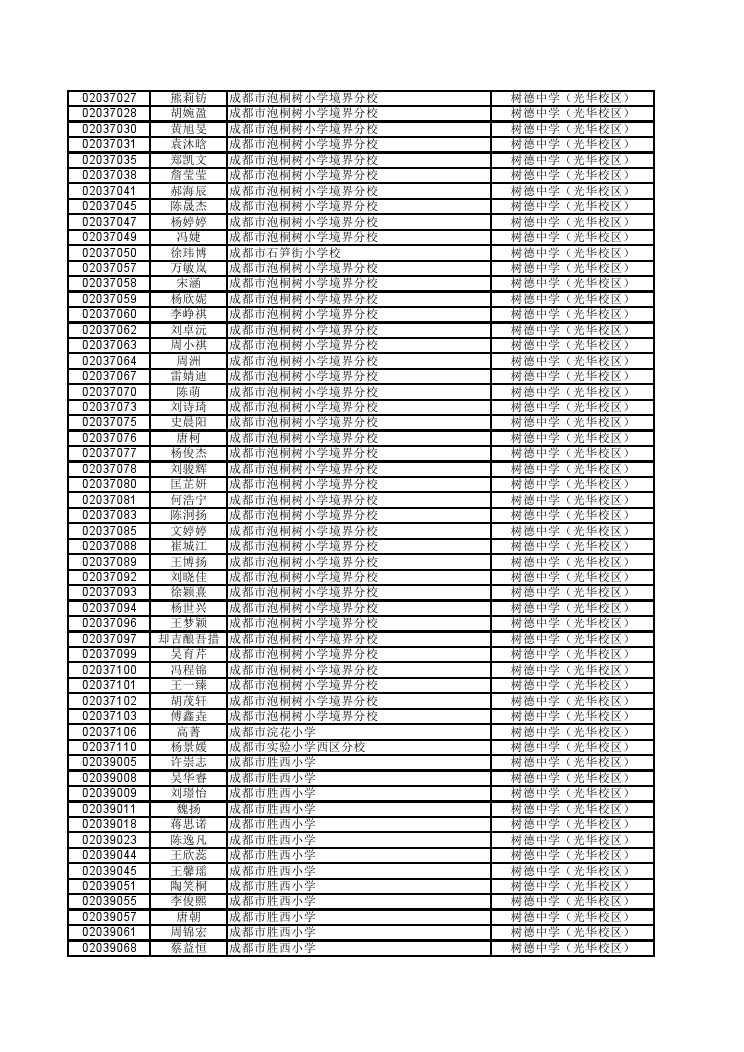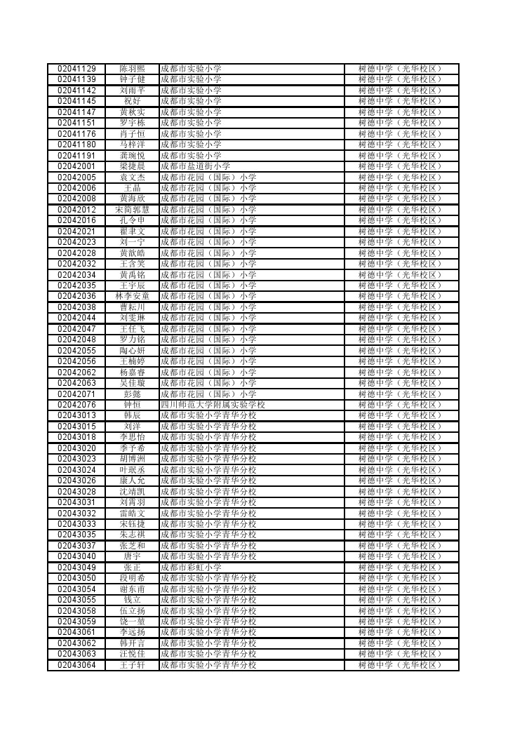 树德光华第三批次小升初派位审查通过名单(5)