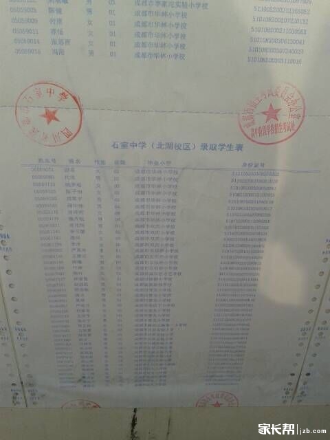 成都石室中学北湖校区2015年小升初电脑派位(大摇号)录取名单已经公布,成都奥数将在第一时间公布石室北湖2015年小升初电脑派位录取名单,详情如下!(图片为家长拍的照片)