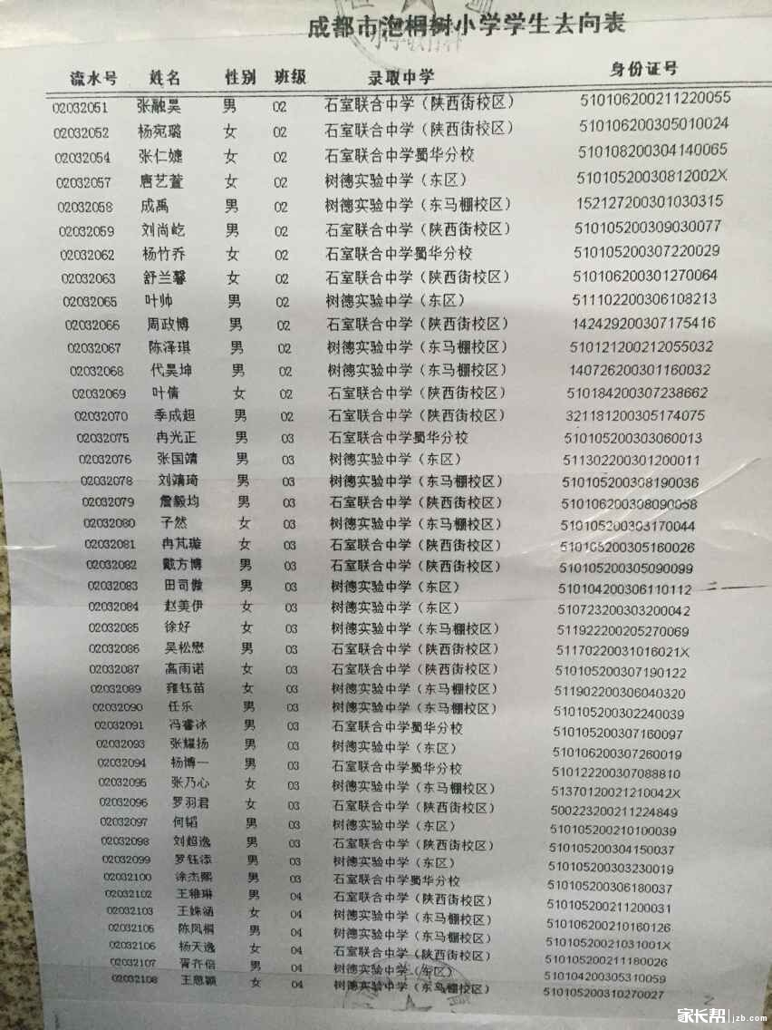 2015成都小升初招生的最后一个批次——划片派位确定学位已经在昨天(7月14日)结束了,下面是成都泡桐树小学学生2015成都小升初去向表。