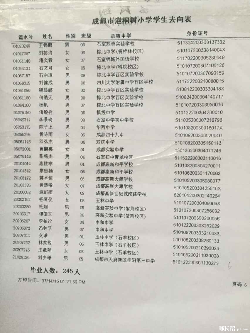 泡桐树小学学生2015成都小升初派位去向表(2)