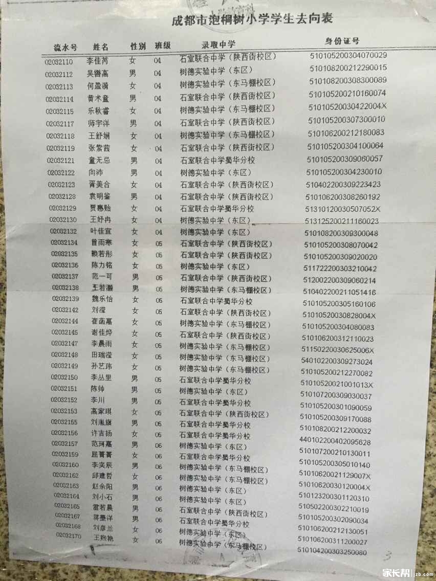 泡桐树小学学生2015成都小升初派位去向表(3)