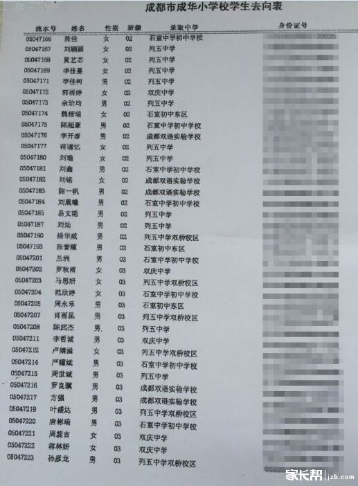 成华小学学生2015成都小升初派位去向表(3)