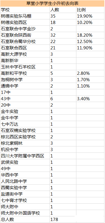 成都草堂小学2015小升初毕业生去向表
