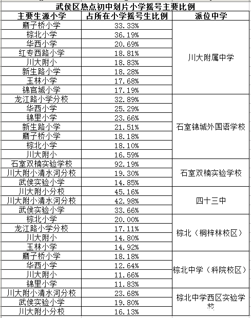 2016成都小升初,孩子读哪个中学更好?是就近,还是择校?家长为了孩子上学是操碎了心,在选择小学的时候都会考虑对口的中学是哪个,小升初的家长更是对本区热点中学倍加关注。以下是成都主城区部分小学对口的中学及进入本区热点中学的比例,供小升初家长参考。本文先统计成都武侯区小学对口初中升学比例。