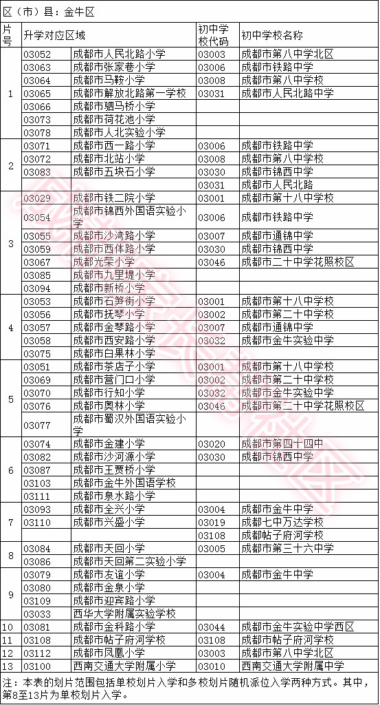 成都金牛区小升初摇号各小学对口初中信息