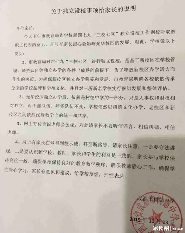 成都树德中学关于479独立设校的说明