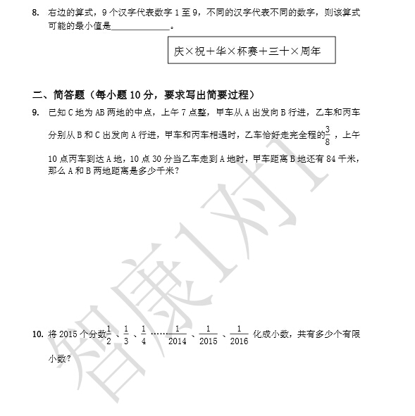 【华杯赛决赛模拟试卷3】