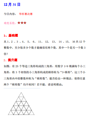 2016成都杯赛备战:华杯决赛练习题(12.31)