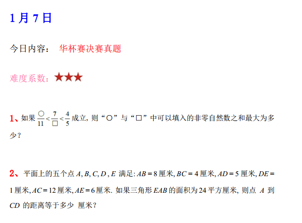 2016成都杯赛备战:华杯决赛练习题(1.7)