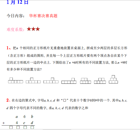 2016成都杯赛备战:华杯决赛练习题(1.12)
