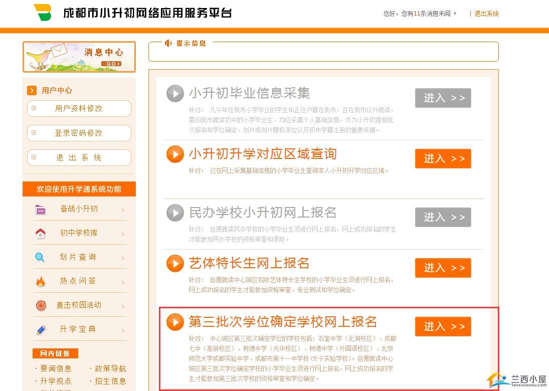 第二步:登录小升初网络应用服务平台(第三批次学位确定学校网上报名时间为6月23日10:00至26日17:00)