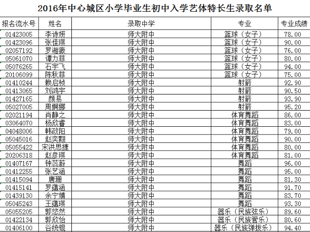 【师大附中2016小升初特长生录取名单】