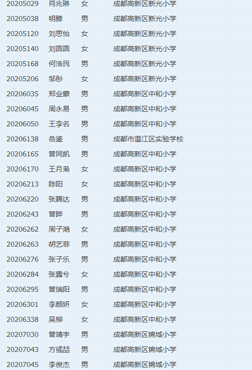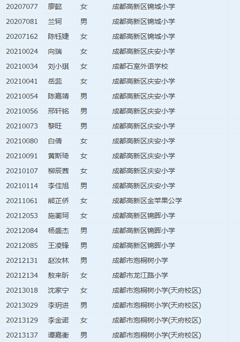 成都七中高新2016小升初大摇号电脑派位名单(4)