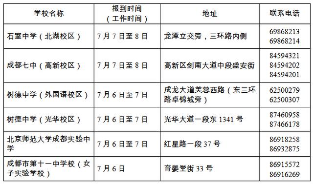 7月5日下午4:00,上述6所学校(校区)在学校公布新生名单,报名学生和家长可前往查询;也可访问市招考办官方网站(www.cdzk.org)点击小升初网络应用服务平台,或直接登录小升初网络应用服务平台(xsc.cdzk.net)查看;还可通过成都市招生考试网的微信平台关注[成都招生考试网]微信公众号或登录www.cdzk.com,扫描二维码查询本人派位结果。提醒被录取的学生家长应及时与学校联系,按学校规定时间及时到学校办理报到手续。被第三批次学校录取的学生不能参加下一批次的划片或划片随机派位。