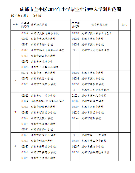 成都市金牛区2016年小升初划片范围 成都家长帮 2016-07-12 13:24:20 成都市金牛区2016年秋季初中(小升初)招生计划表公布【点击查看详情】,下面是成都市金牛区2016年小学毕业生初中入学划片范围(小升初划片范围),供参考。 成都市金牛区2016年小升初划片范围 首页 上一页 下一页 尾页