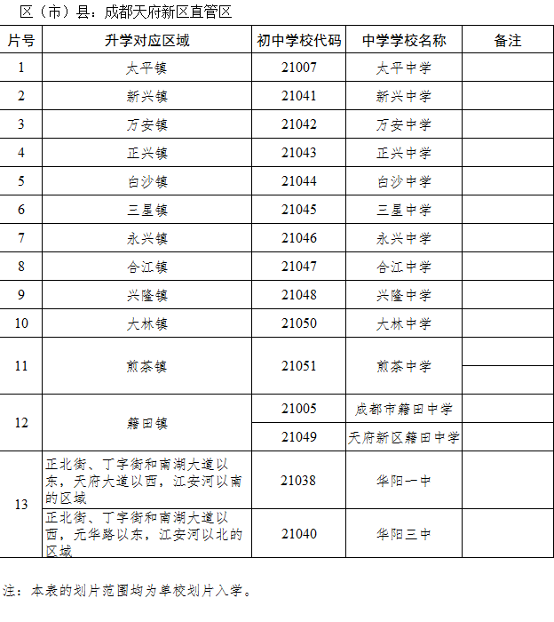 下面是成都市天府新区2016年小学毕业生初中入学划片范围(小升初划片范围),供参考。