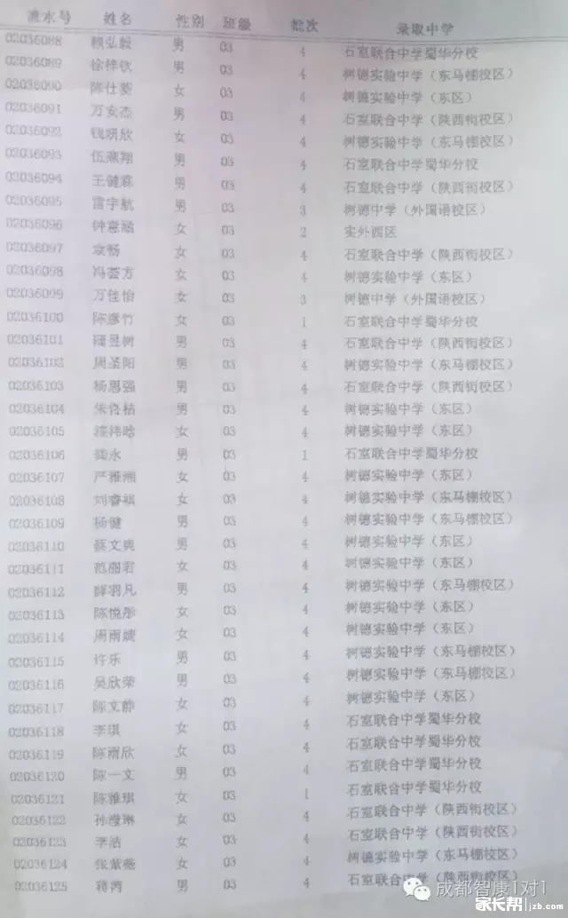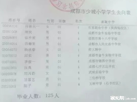 【成都少城小学学生2016年小升初划片派位去向名单】